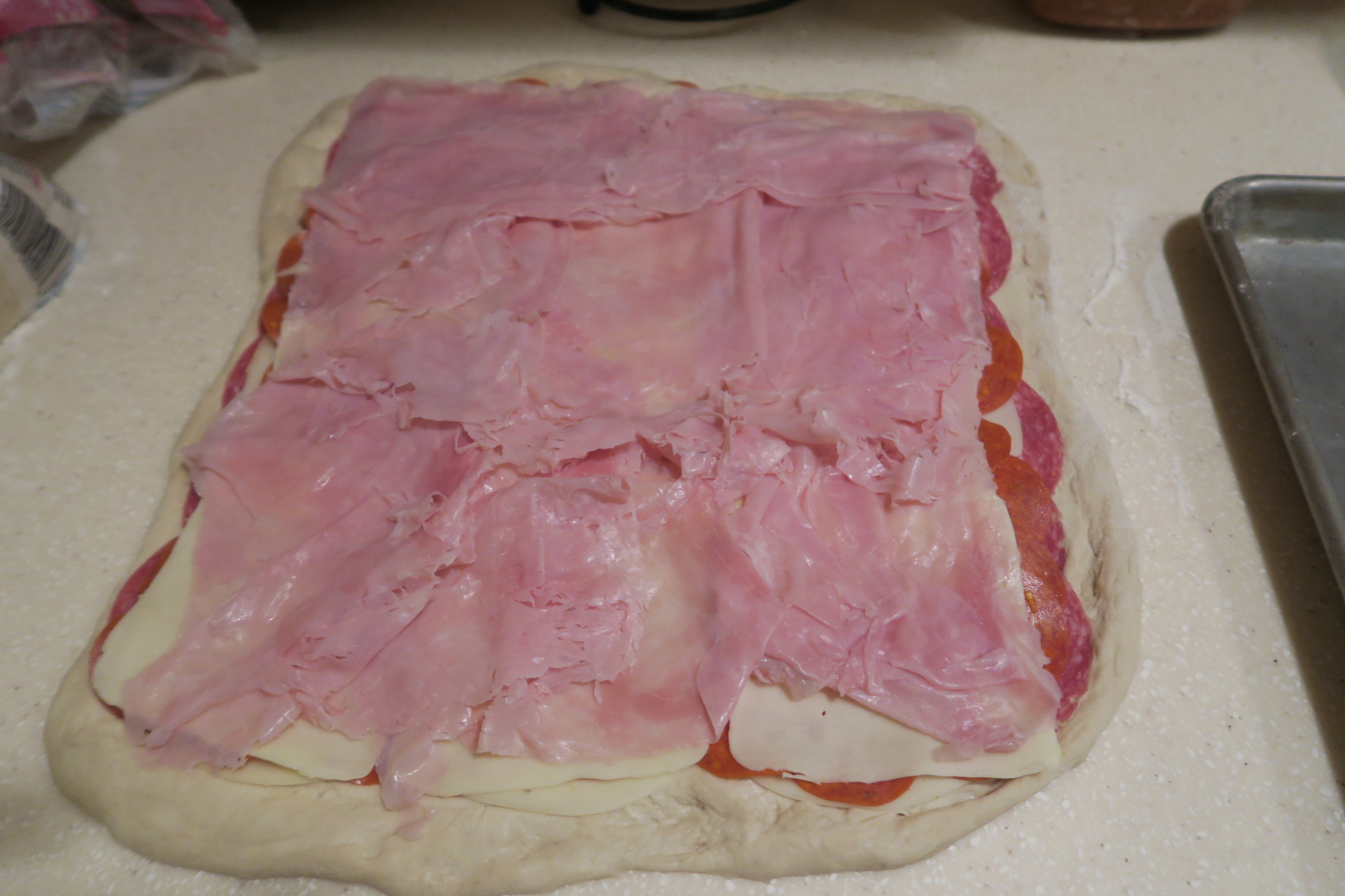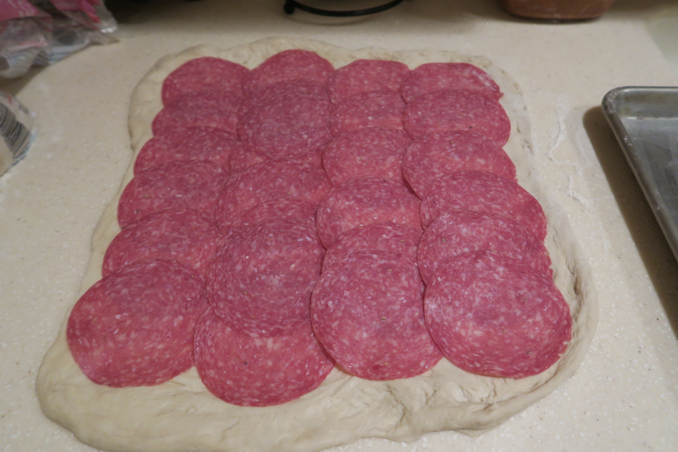 Then you start adding the meat and cheese.  I started with the Salami, then added everything else.